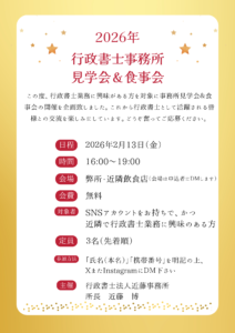 福島建設業許可サポートプロ.com > お知らせ > 2026年【合格おめでとうございます!】「事務所見学会&食事会」 > 08.02.13行政書士事務所 見学会&懇親会 A4 チラシ